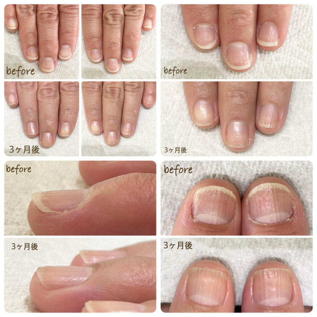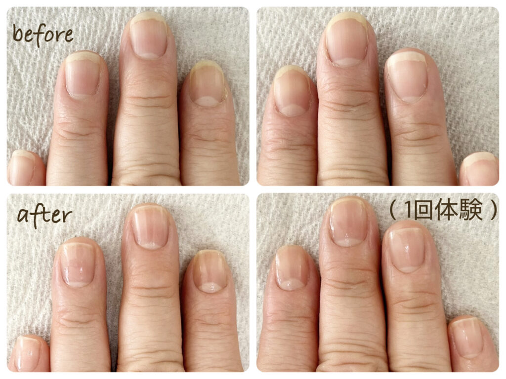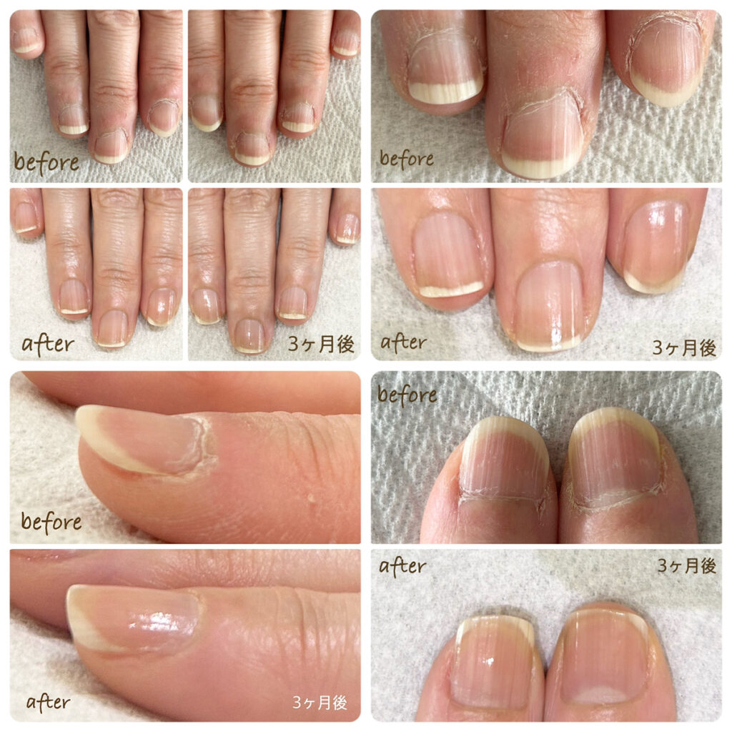 最初は「本当に変わるのだろうか」と少し不安もありましたが、サイトにあった実際に変わっていく方々の写真を見て、私の爪もどう変わるのか楽しみな気持ちの方が大きかったです。
